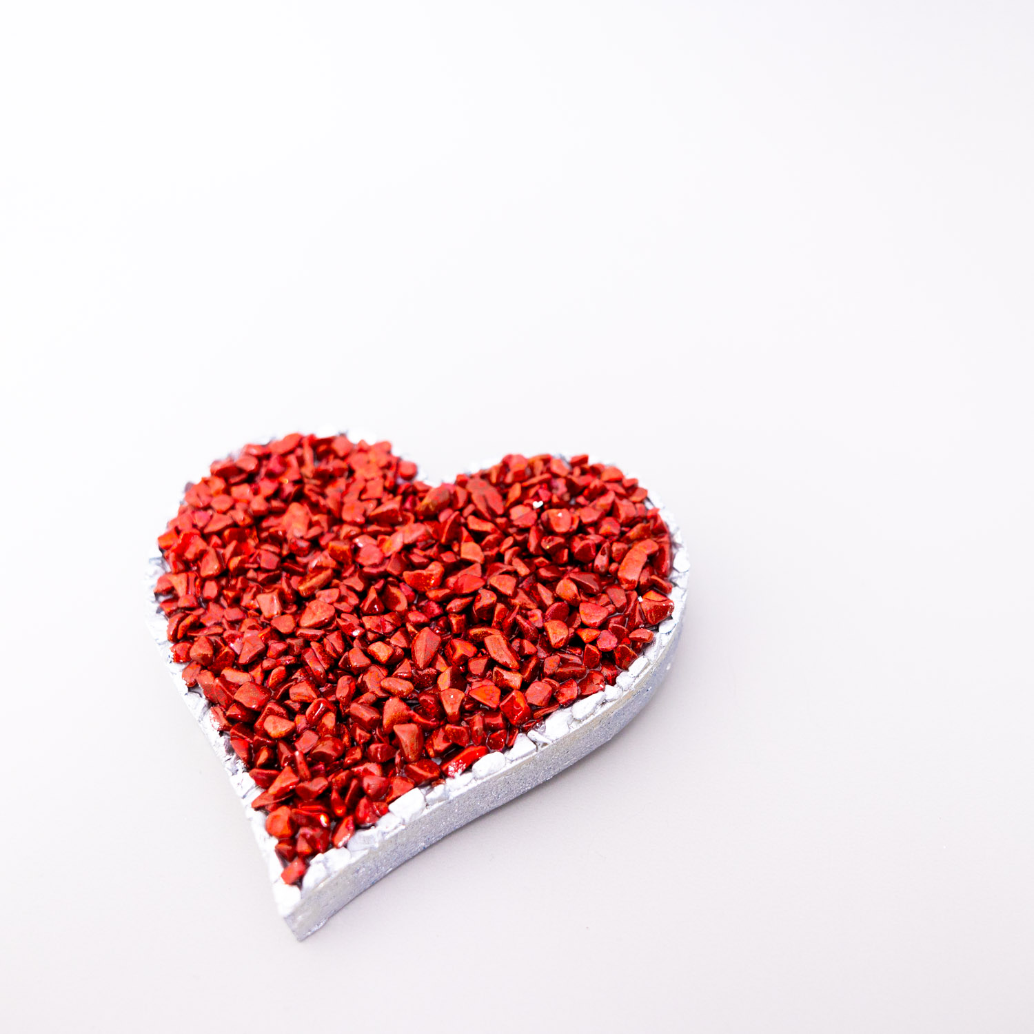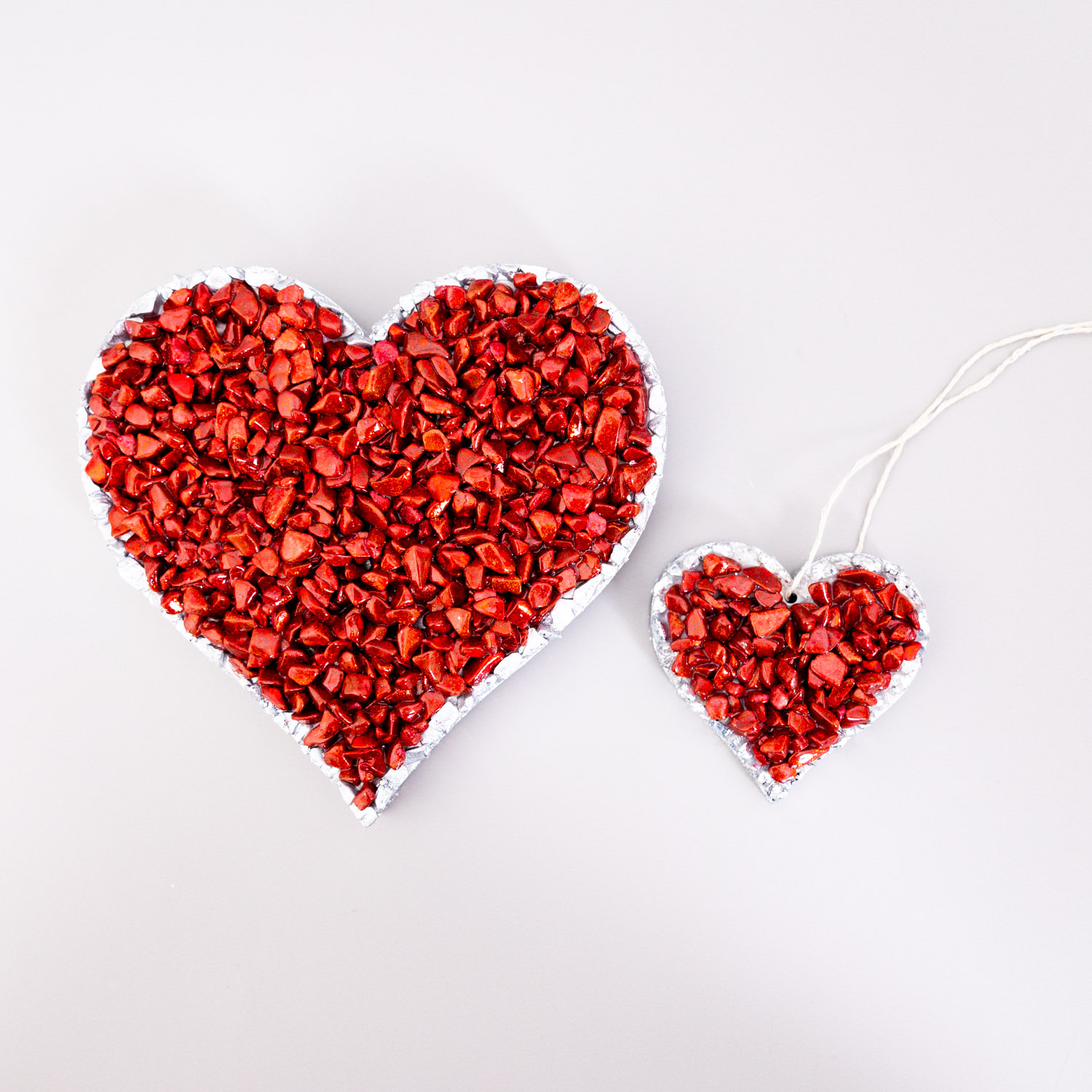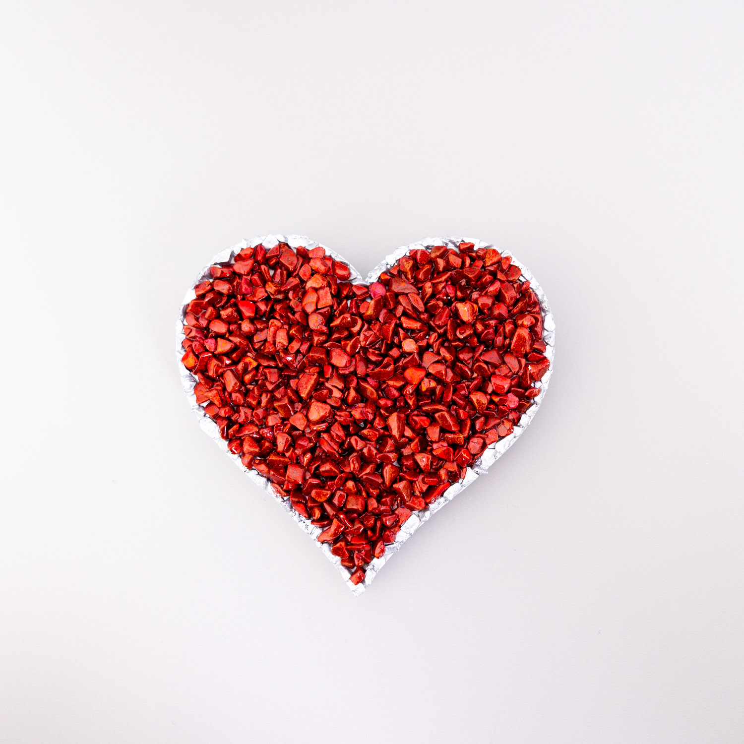 Large Size Timber heart edged in Silver leaf foil centred with enhanced red jasper and red coral crystals.