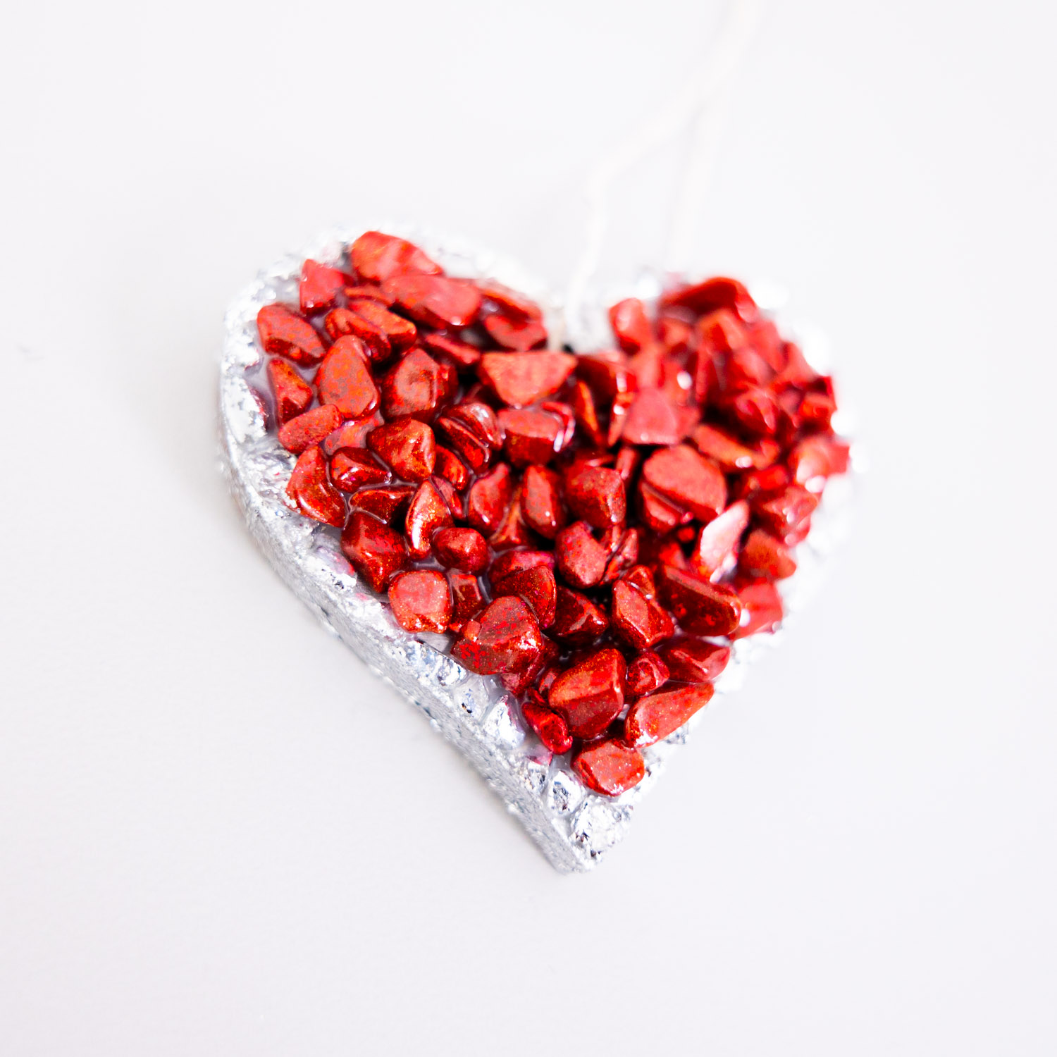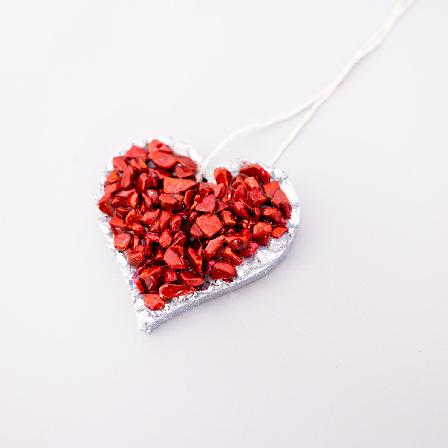 Small Size Timber heart edged in Silver leaf foil centred with enhanced red jasper and red coral crystals.