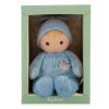 Meet baby Linen! This sweet brown-eyed doll is dressed in a calming blue bodysuit with a matching knotted hat. With a soft body, easy-to-grab arms and legs, and a lightly weighted feel, Linen is perfect for snuggling and provides comfort as a first doll. Named after the flower associated with simplicity, purity, and elegance, Linen stands 24cm tall and is made with micro velvet and jersey from 90% recycled fabrics . Filled with eco-friendly stuffing made from 100% recycled materials, she is machine washable on a delicate cycle for easy care. Linen comes beautifully presented in an open gift box and is one in the Baby range from Kaloo.