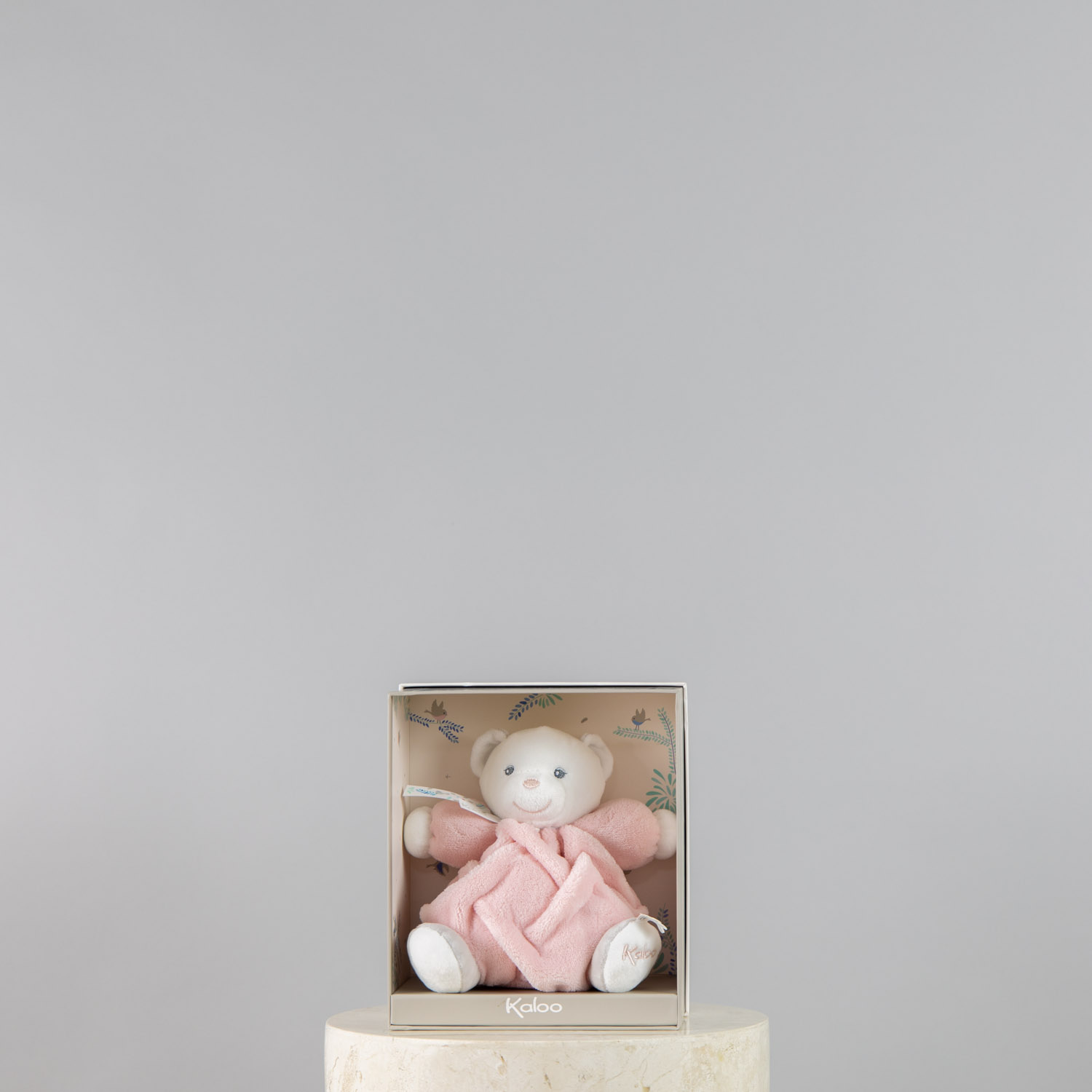 Pink Bear’s little face and friendly smile will thrill all little girls.She is cuddly, easy care machine washable and unisex, perfect for a christening, first birthday or newborn celebration. Stunningly presented in an iconic Kaloo FSC giftbox that can be personalised with a message