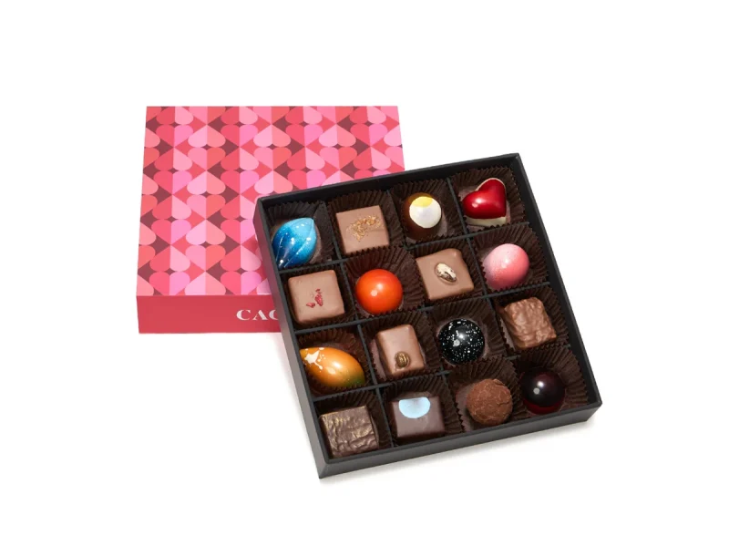 Indulge in a generous selection of CACAO’s handcrafted chocolates with this 16-piece Valentine’s assorted box. Featuring a curated mix of filled bonbons, pralines, and textured chocolate creations, each piece showcases our dedication to flavour, balance, and artisanal craftsmanship.