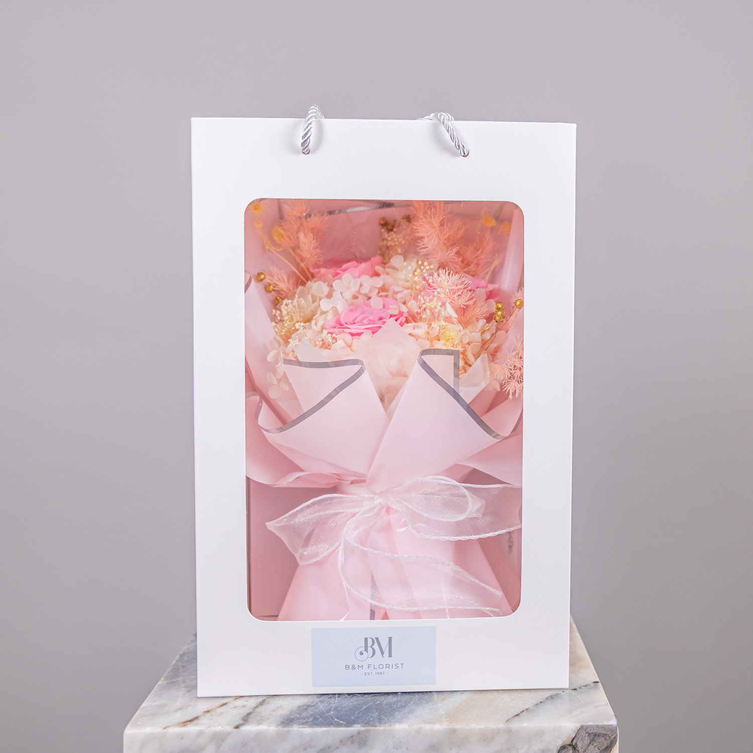 Carefully curated and beautifully presented, this piece is designed to be both a floral arrangement and a keepsake—capturing a moment that lasts beyond the occasion.