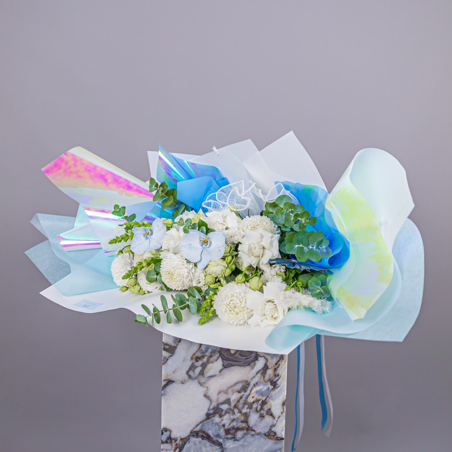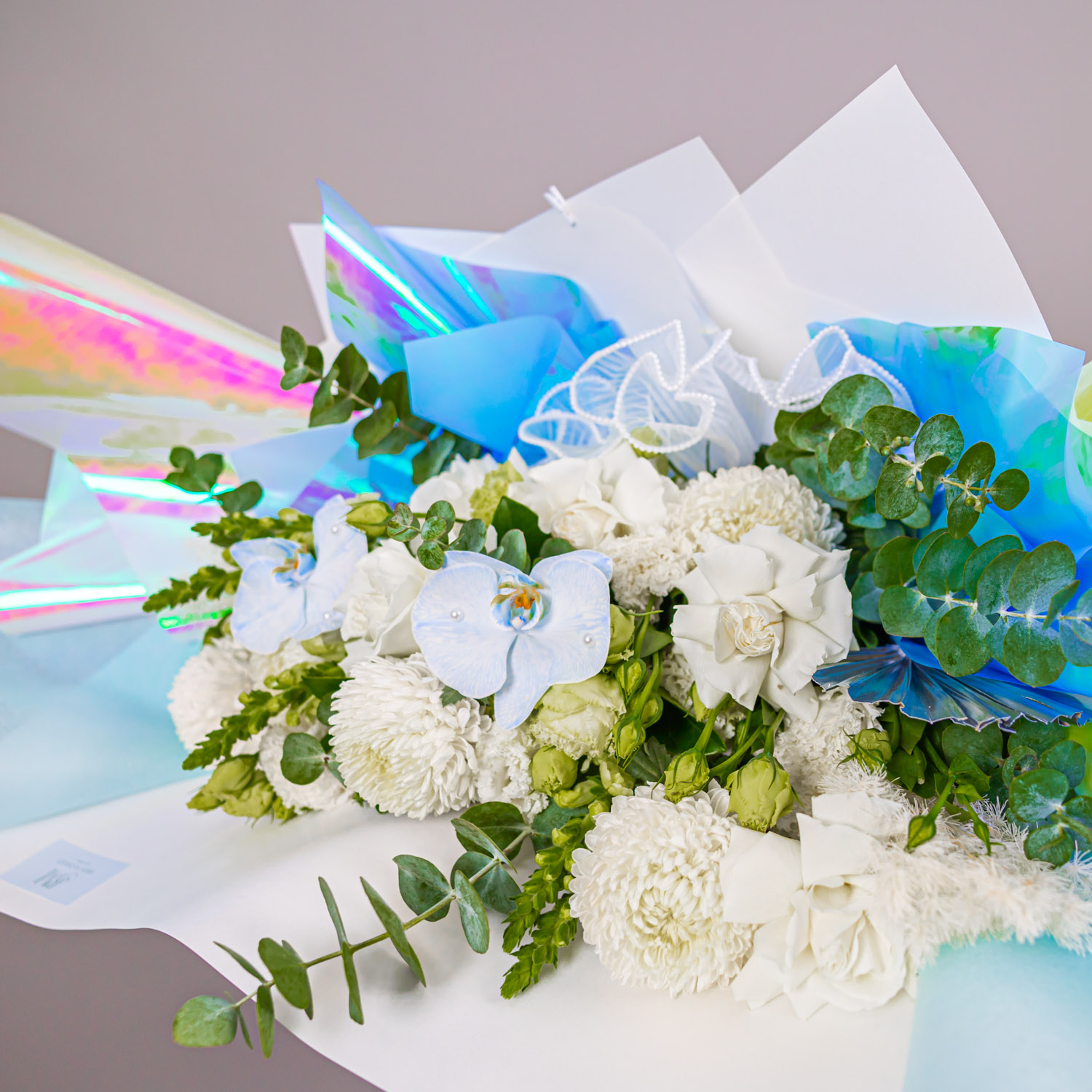 Luminous and expressive, The Opal Pearl is our most premium abstract bouquet from the collection—where light, texture, and form come together in quiet harmony. Thoughtfully designed by B & M Florist for Mother’s Day, this piece reflects the way a pearl is formed—slowly, delicately, and with intention.