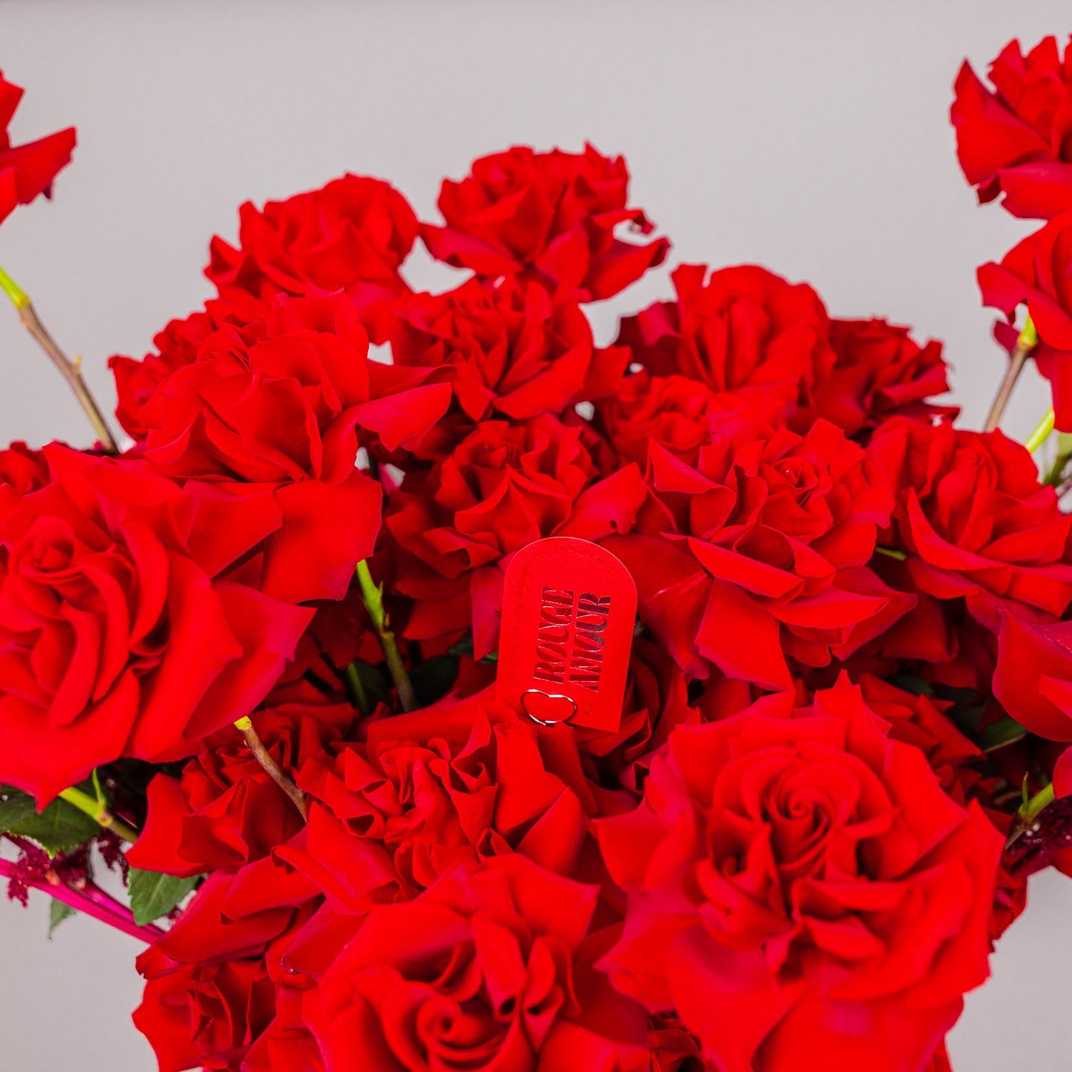 Each arrangement is finished with a Rouge Amour signature tag, delicately attached as a final detail. Featuring refined chrome lettering and the campaign’s romantic sentiment, the tag is a subtle yet distinctive mark of authenticity, this piece celebrates love in its most confident form — expressive, elegant, and impossible to ignore. Ideal for those who appreciate design-led floristry and elevated gifting.