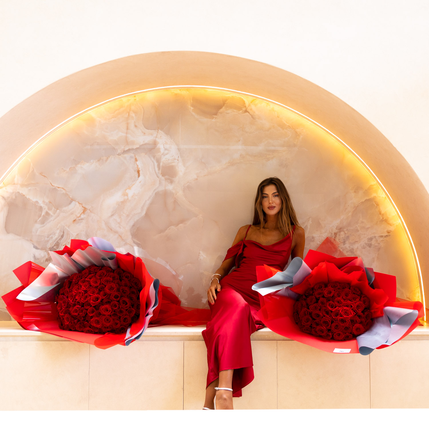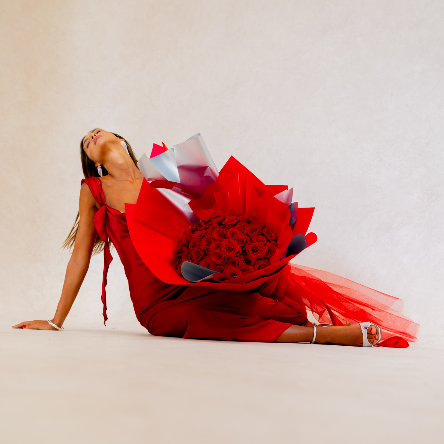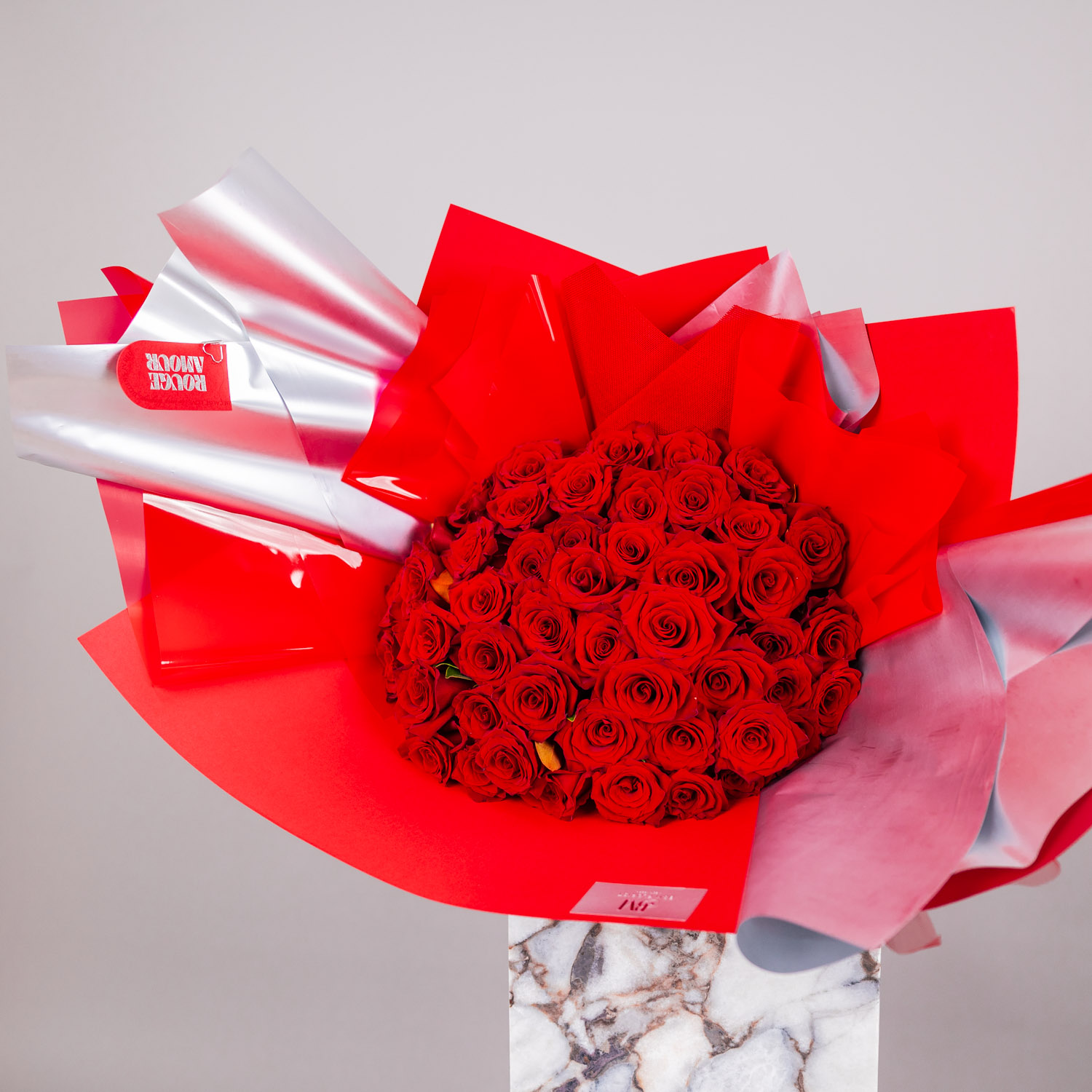 An opulent bouquet of 50 premium red Ecuadorian roses, this bouquet is designed to leave a lasting impression. Overflowing with passion. Beautifully wrapped in our Valentine’s Day exclusive signature wrapping, designed to elevate the experience beyond flowers alone.