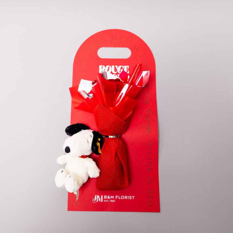 Valentine’s Day Flowers- Single Red Rose with Snoopy Keyring Exclusive Design